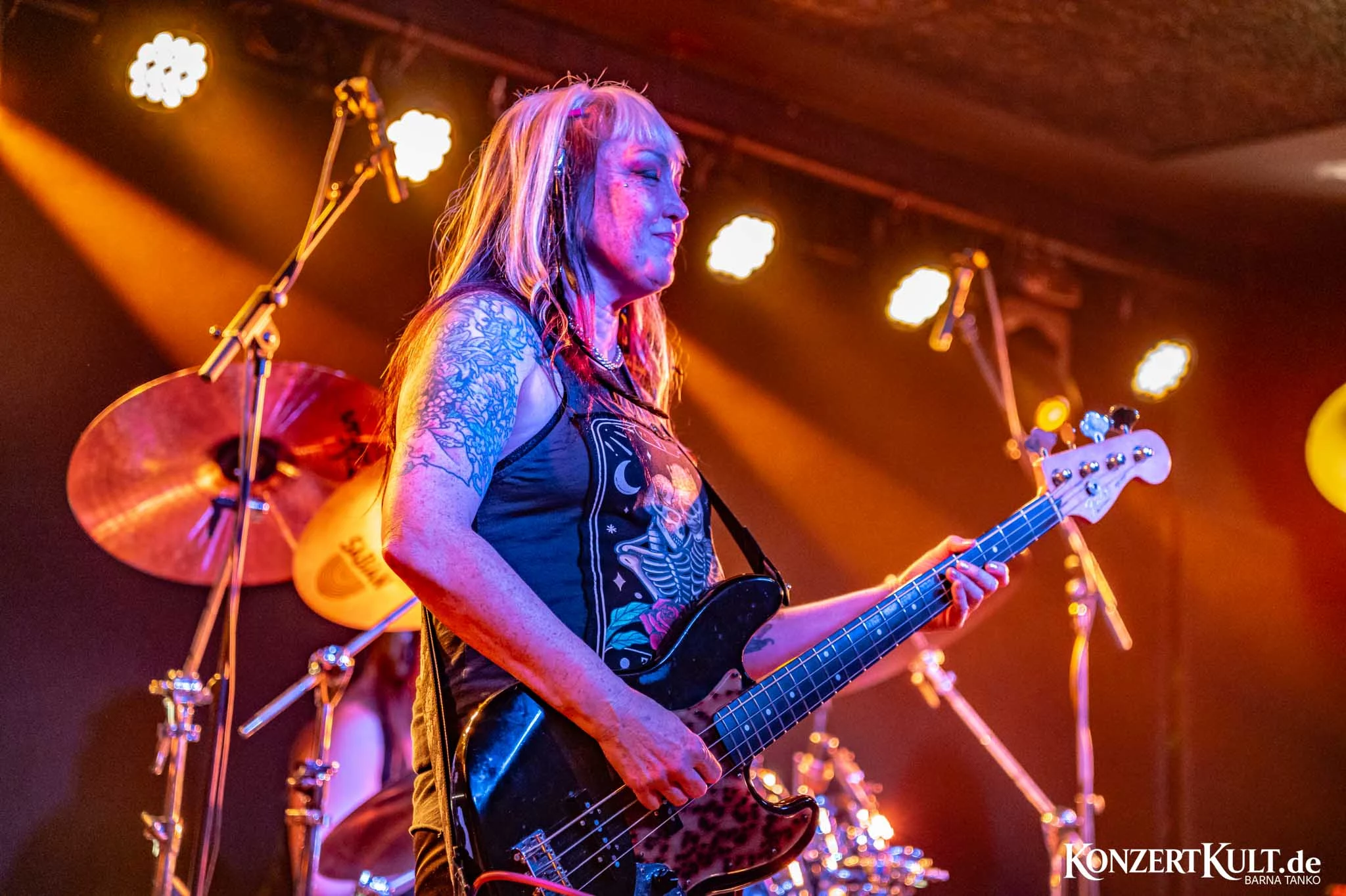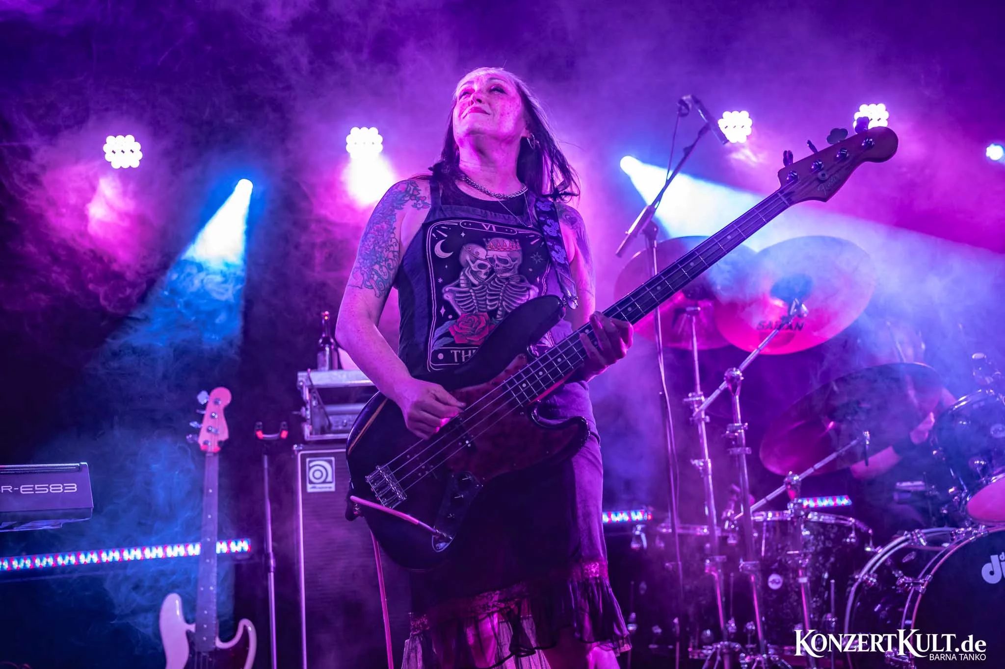 Black Sabbitch opened the evening at the Yard Club in Die Kantine, Cologne, launching straight into “War Pigs” and immediately locking in the night’s heavy, nostalgic tone. The Tuesday show drew a crowd of roughly 100 people, resulting in an intimate setting that suited the band’s straightforward, no-frills delivery. The audience—predominantly middle-aged men—reacted with clear appreciation, maintaining a steady level of enthusiasm from start to finish, providing a strong backbone for the performance, as Black Sabbitch powered through a set of faithfully executed Black Sabbath classics.