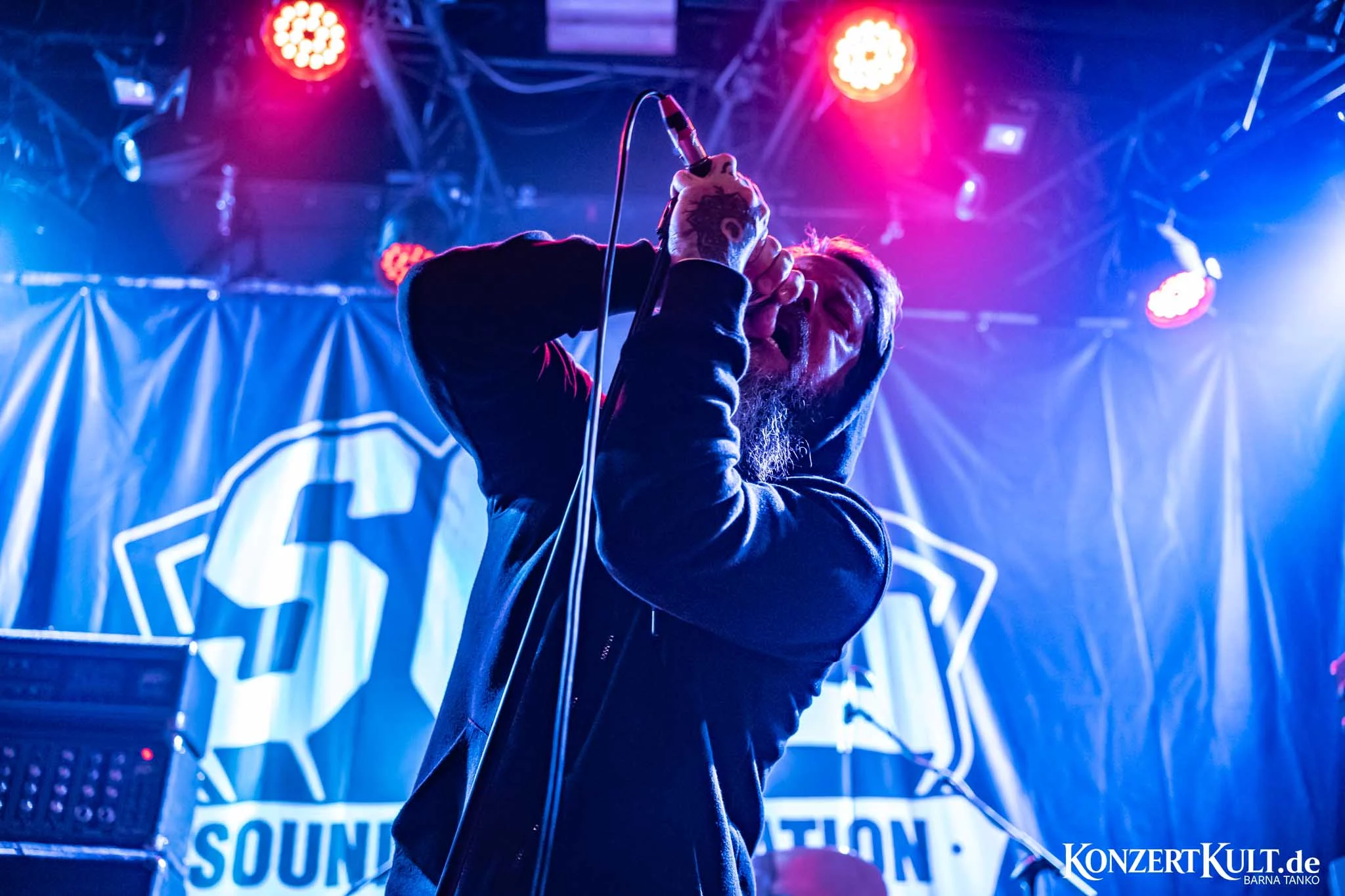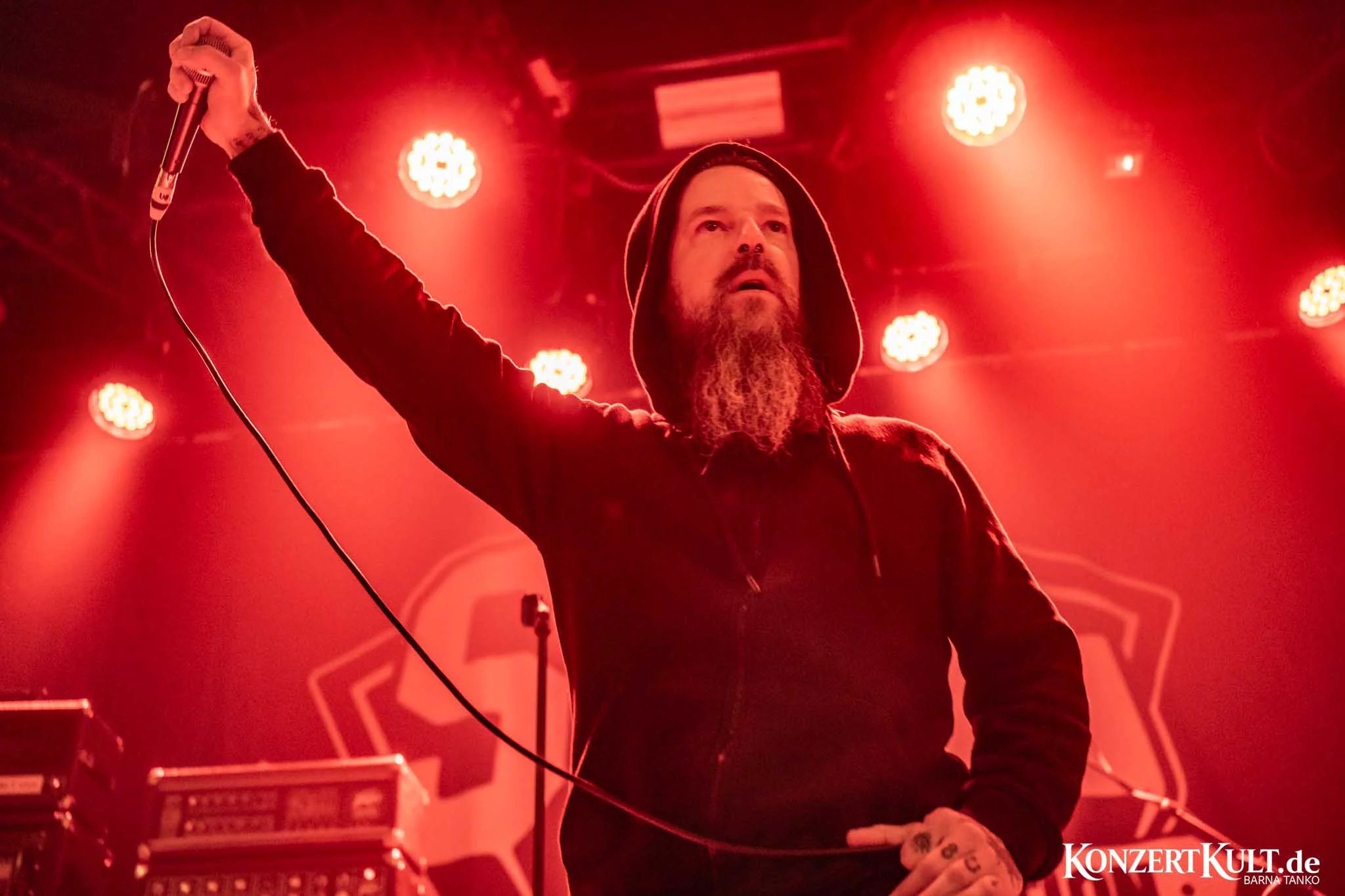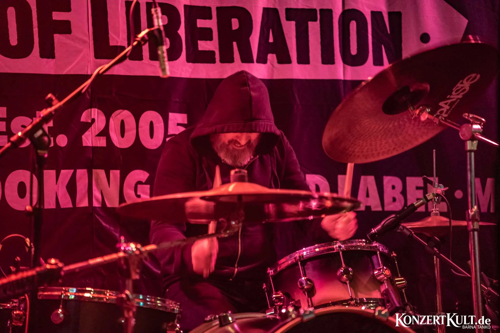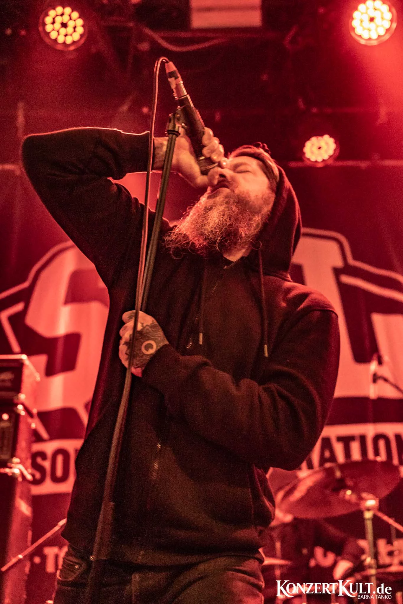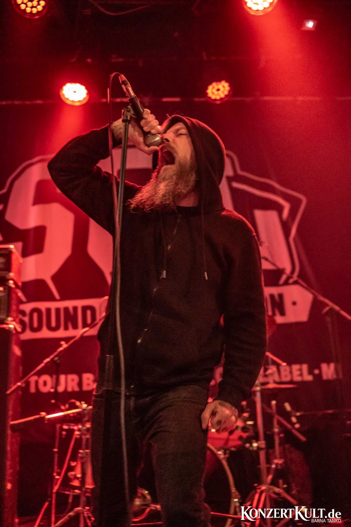 Cult Of Occult took stage in Club Volta, dressed all in black and hoodies pulled over their head, washed mostly in red stage lights.