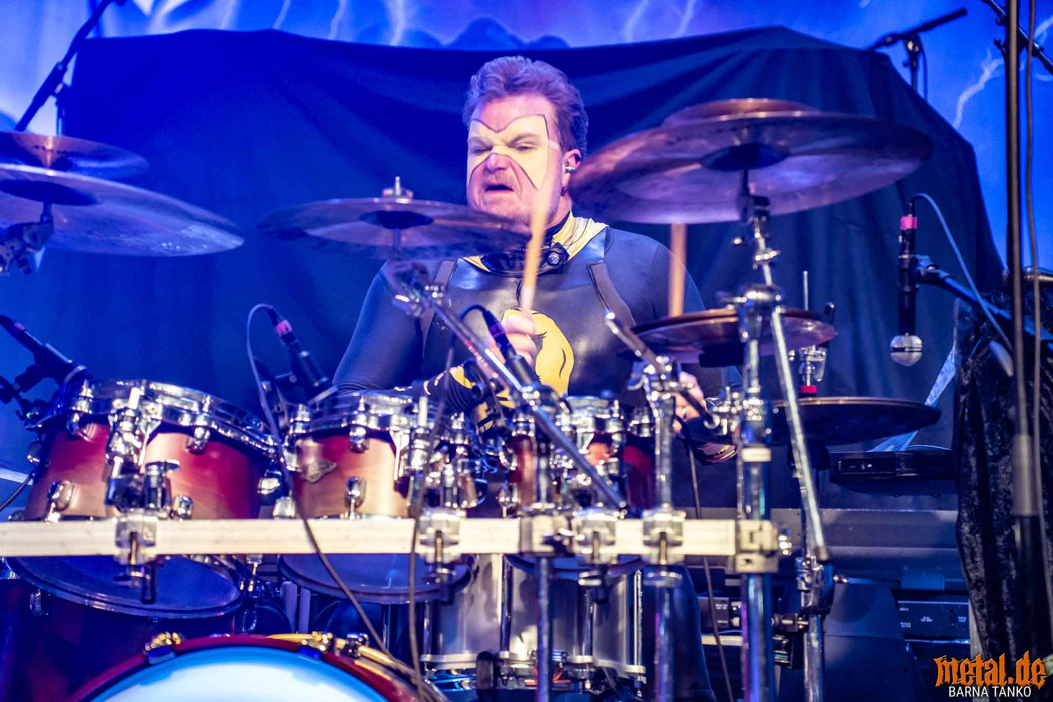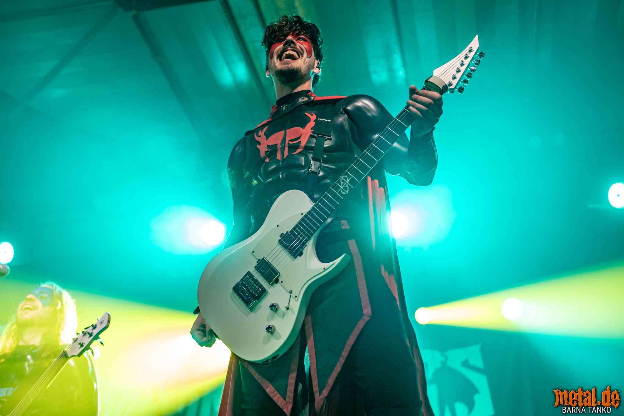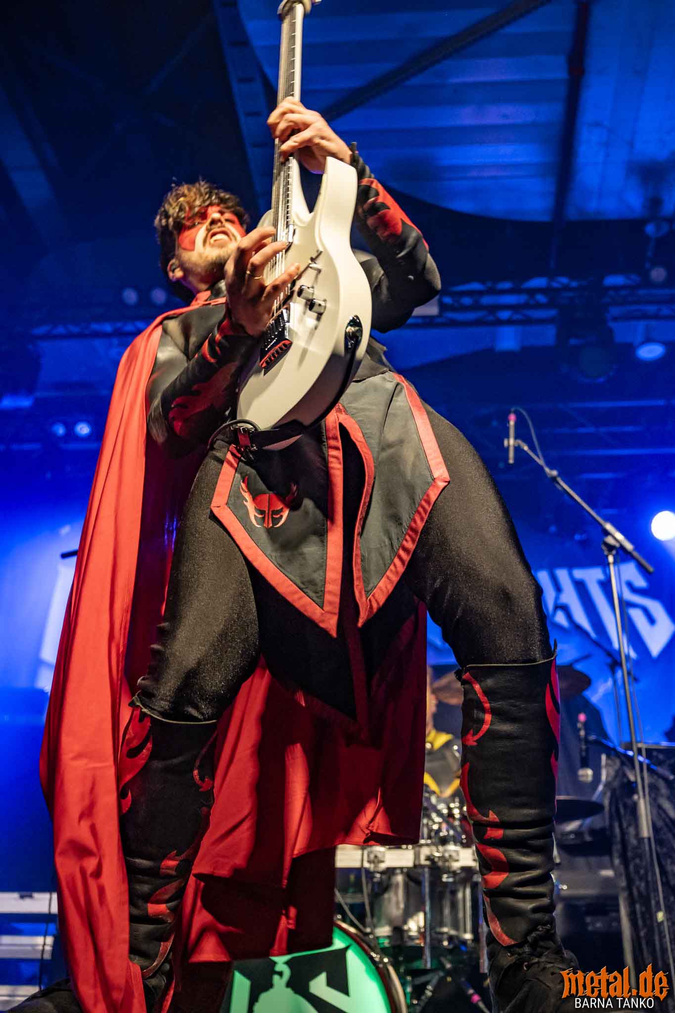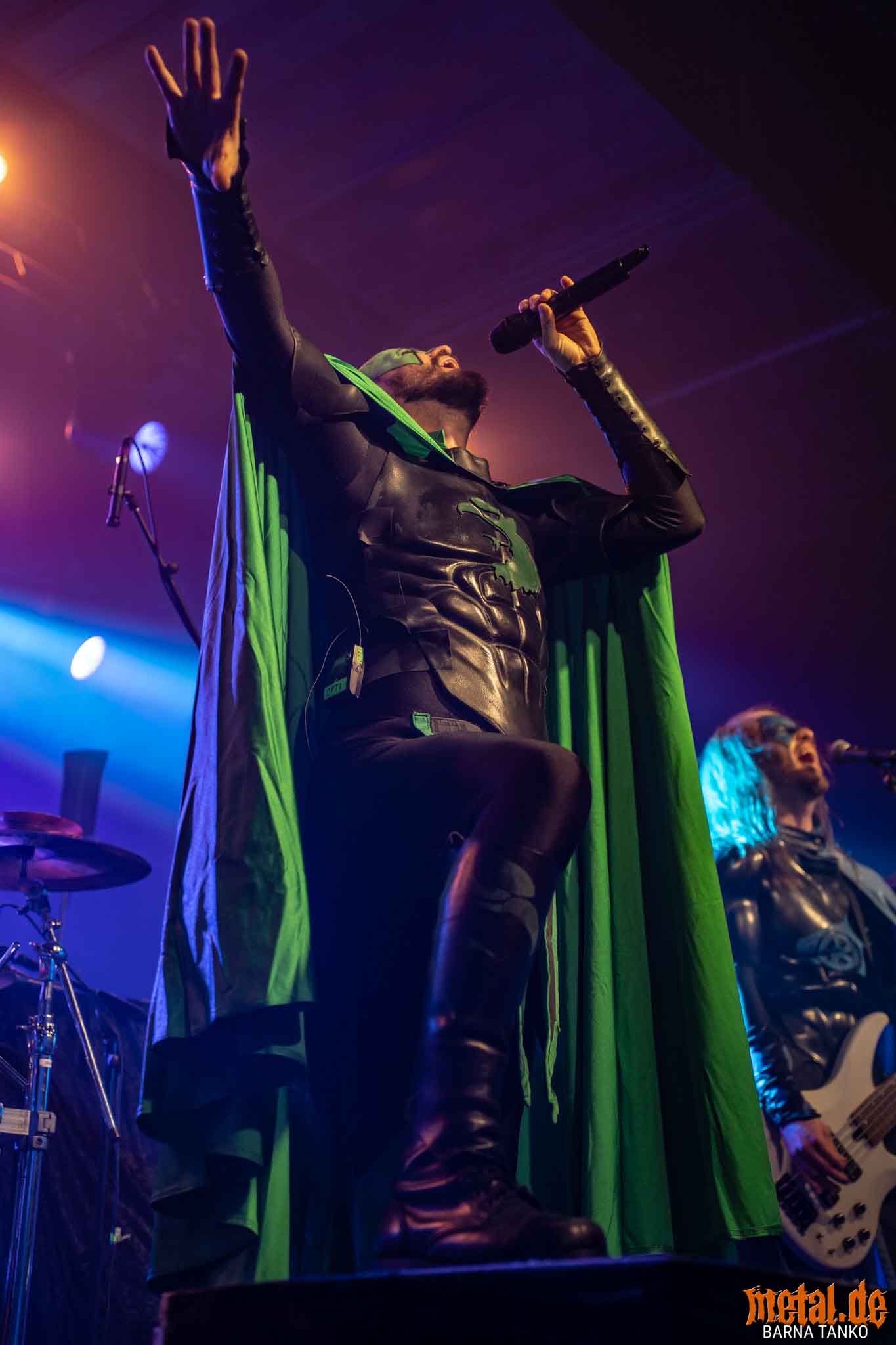 The Grailknights are a metal band from Hanover. Their music can be stylistically assigned to the melodic Death Metal and Power Metal. Their live performances include a strongly theatrical component that thrives on the interaction between the band and the audience. The eternal struggle of good against evil is the core of the band’s concept, which is fundamentally reminiscent of that of the Masters of the Universe. Thus, the Knights carry out their eternal battles against Dr. Skull of Castle Grailskull, their home castle in Grailham City. They themselves appear in superhero costumes or “Superhero armor” on, including painted face mask as a parody of Corpsepaint. In contrast to black metal, black and white colours do not dominate the painting and clothing of the Grailknights, but black and an individual colour for each member of the band. Due to their superhero costumes and self-deprecating appearance, the band stands out strongly from the otherwise rather dark heavy metal. The concerts are humorously staged as epic battles. Most of the time Dr. Skull has stolen the holy Grail of the Grail Knights and in the course of the concert it is recaptured by the band. Various supporting characters for both sides appear on stage. The audience, referred to by the band as the Battlechoir, is actively integrated into the battle through cheering speeches, smaller stories and gags. The battle cry is: “Grailknights Battlechoir”, and the audience replies in chorus: “Yes Sire!”.