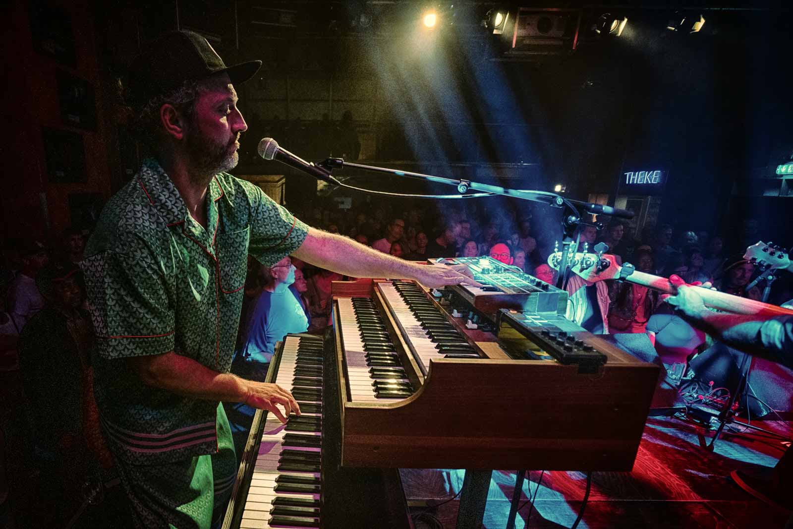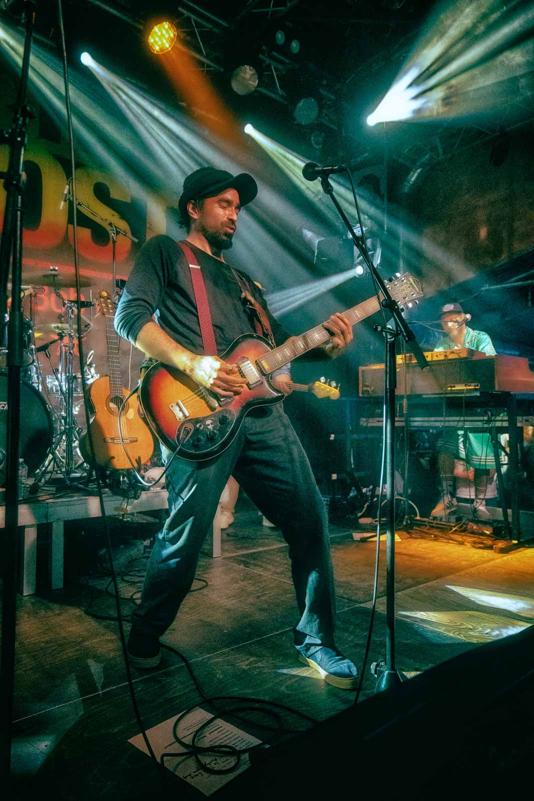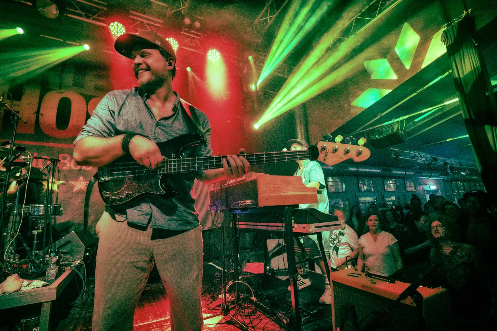 The stage is kind of smallish and pushed into the corner but it has a nice light system and the sound is good.