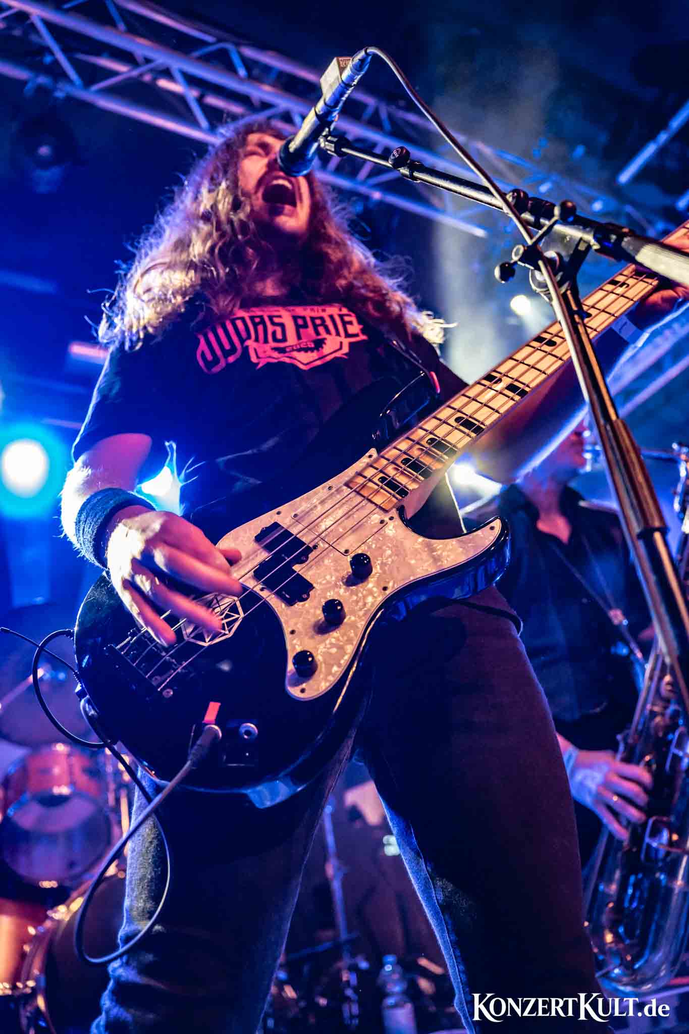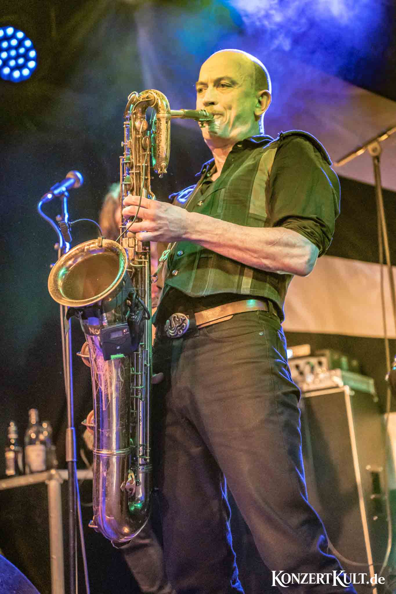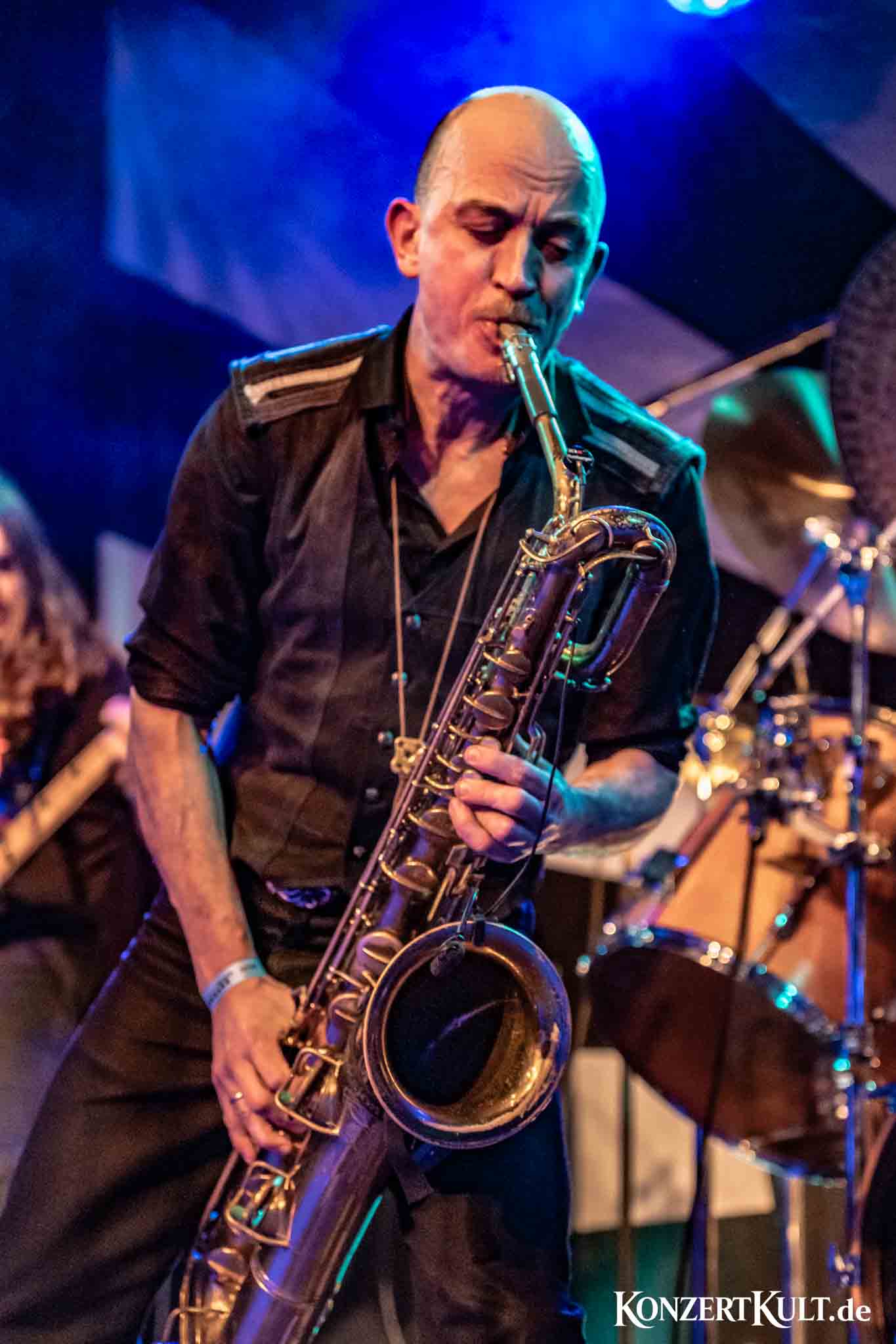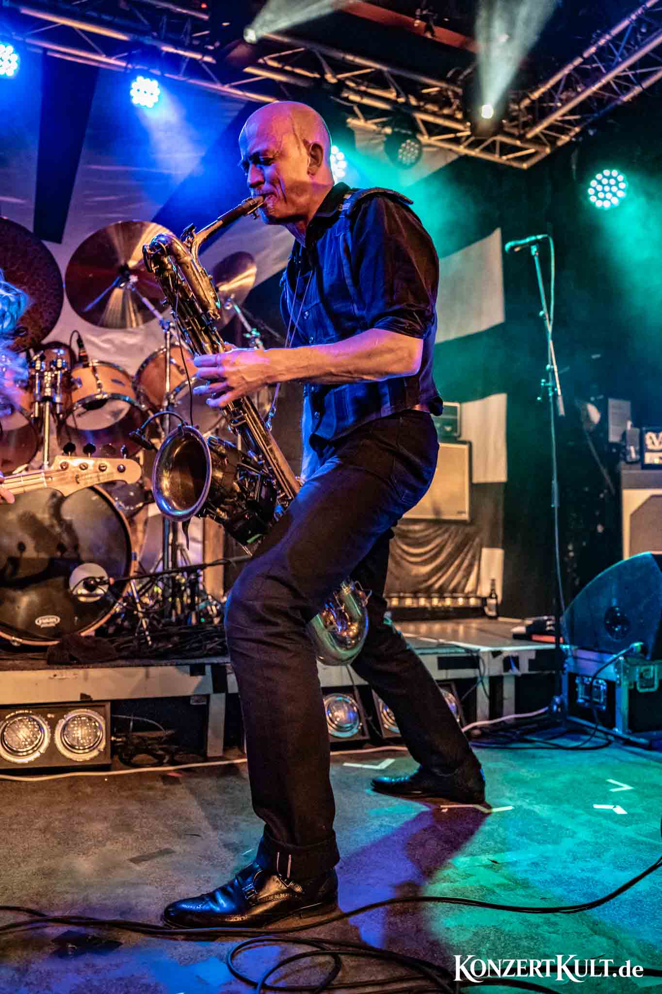 The stage setup leaves little doubt about where the band’s rhythmic core lies. A drum kit far larger than average dominates the stage, signalling the importance of the band’s powerhouse percussion, although we have not seen much the man in command buried behind the set. Around it, Spidergawd build their sound with driving bass lines, gritty guitar riffs, layered vocal harmonies and, of course, the unmistakable presence of bass saxophone.